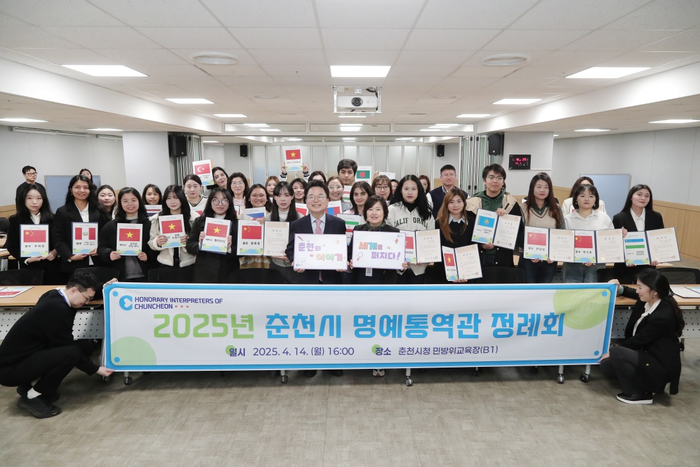 [스포츠서울ㅣ춘천=김기원기자]육동한 춘천시장은 14일 시청 다목적회의실에서 개최한 2025년 춘천시 명예통역관 위촉식에 참석했다.