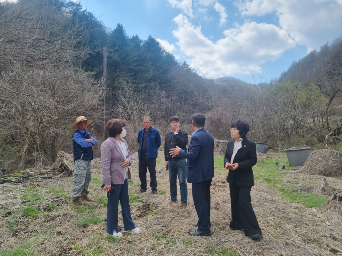 [스포츠서울ㅣ김기원기자]홍천군의회 최이경 부의장과 용준순, 나기호, 황경화의원은 4월 15일 홍천군 남면 명동리 산95번지의 홍천군과 밤뜨래영농조합법인 간의 공유재산 임대를 위한 업무협약 예정지를 둘러보고 주민들의 의견을 청취했다.