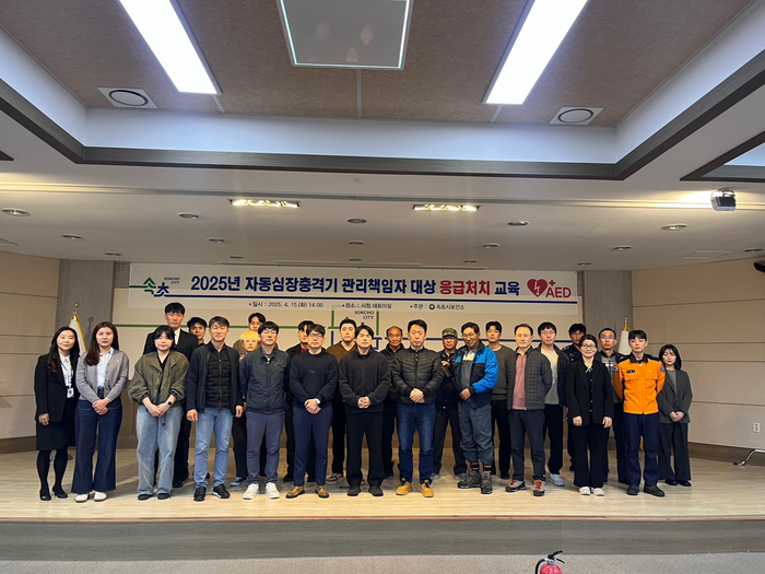 [스포츠서울ㅣ김기원기자]속초시보건소가 15일부터 16일까지 이틀간 시청 대회의실에서 심정지 상황에 대응하기 위한 심폐소생술 등 응급처치 교육을 진행했다. 이번 교육에는 자동심장충격기 관리책임자 25명과 지역 주민 20명이 참석했다.
