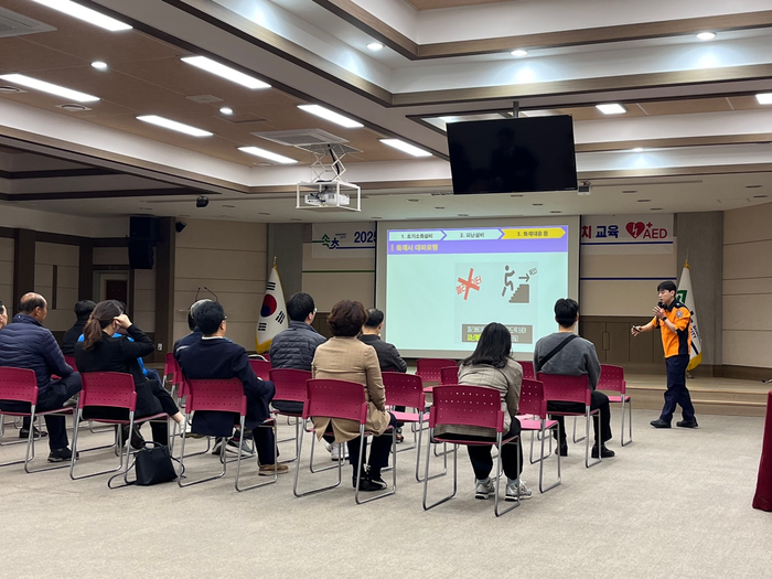 이에, 속초시보건소는 속초소방서 소속 전문 강사를 초빙해 교육용 모형을 이용한 심폐소생술 실습, 자동심장충격기(AED) 사용법 교육을 진행했다. 또한, 최근 대형 산불 등 화재가 이어지는 만큼, 안전의식 제고를 위한 화재 시 대피 요령 교육도 함께 진행했다.