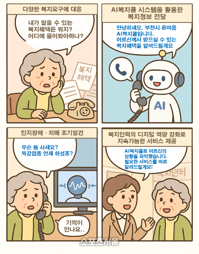 복지 분야에서는 부천시가 ‘온마음 AI복지콜’을 통해 취약계층에 필요한 정보를 전달하고, AI 음성 분석으로 통화 중 노령층의 경도인지장애 여부를 선별하는 기능을 도입한다. 양방향 소통이 가능한 AI 콜 시스템을 활용해 부족한 사회복지 인력을 보완하고, 복지 사각지대 해소와 고령사회 대응을 동시에 추진한다는 계획이다.