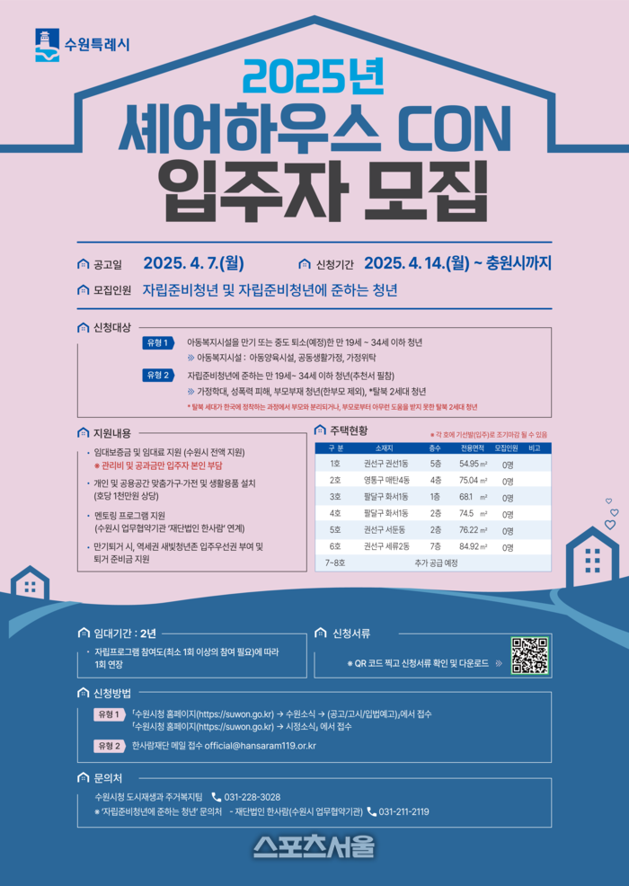 〔스포츠서울│수원=좌승훈기자〕경기 수원시는 ‘자립준비청년 셰어하우스 CON’ 입주자로올해 처음으로 ‘자립준비청년에 준하는 청년’을 선발했다.