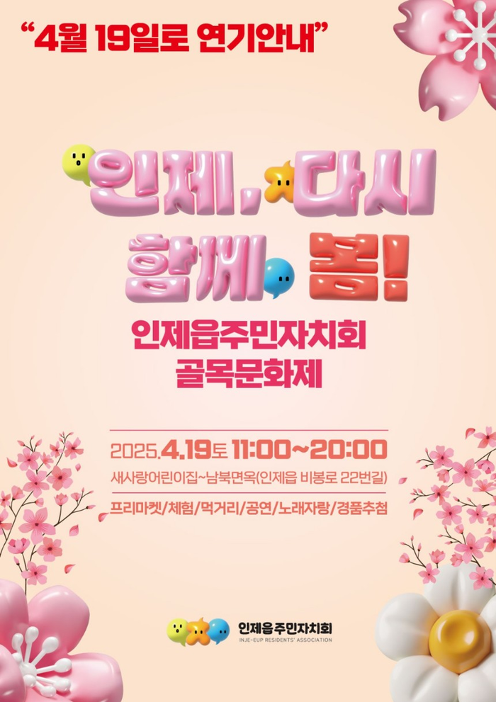 [스포츠서울ㅣ김기원기자]제6회 인제읍 골목문화제 「인제, 다시 함께 봄!」이 오는 4월 19일 인제읍 벚꽃거리(상동리 283-2 일원)에서 열린다.