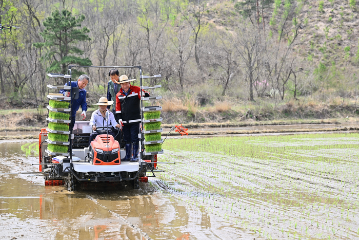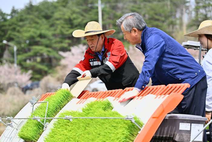 [스포츠서울ㅣ김기원기자]2025년 속초시 관내 첫 모내기가 4월 17일 장천마을 어두훈 농가에서 이병선 속초시장 및 최원규 속초농협 조합장, 탁승열 NH농협 속초시지부장을 비롯한 관계자가 참석한 가운데 진행됐다.