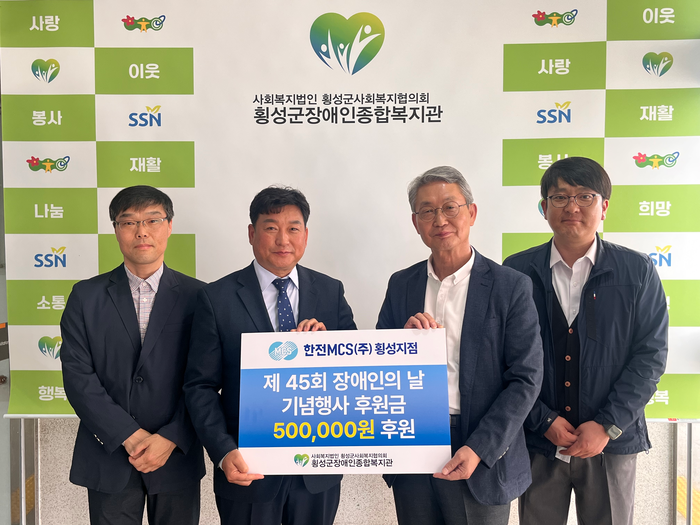 한전엠씨에스(주) 횡성지점 원정희 지점장은“장애인의 날을 맞아 따뜻한 나눔을 실천할 수 있어 뜻깊다”며 “이번 협약을 계기로 지역사회와 더욱 긴밀히 협력하고, 장애인복지 향상을 위한 다양한 활동에 앞장서겠다”고 말했다.