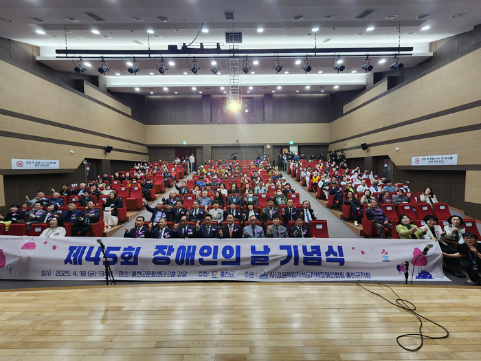 [스포츠서울ㅣ김기원기자]홍천군의회 박영록 의장과 최이경 부의장, 용준식 의원, 이광재 의원, 김광수 의원, 나기호 의원, 황경화 의원은 4월 18일(금) 오후 2시 홍천군문화센터에서 개최된 제45회 장애인의 날 기념식에 참석했다.
