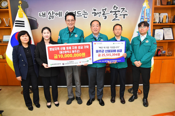이어서 “이번 지원이 단순한 물질적 기탁에 그치지 않고, 재난 대응에 있어 지역 간 이해와 협력의 중요성을 다시금 확인하고 발전시켜 나가는 계기가 되길 바란다”며 “속초시는 앞으로도 울주군을 비롯한 산불 피해 지역의 빠른 일상 회복을 응원하고, 산불 예방과 복구를 위한 다양한 협력 방안들을 함께 모색해 나가겠다”라고 덧붙였다.