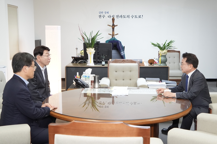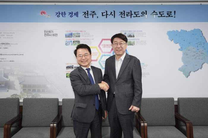 [스포츠서울ㅣ춘천=김기원기자]육동한 춘천시장은 22일 오전 전주시청을 방문해 우범기 전주시장과 면담을 갖고, 두 도시가 도청 소재지라는 공통점을 바탕으로 지속 가능한 도시경영, 청년정책, 지역문화 활성화 등 다양한 정책 분야에서 협력 방안을 논의했다.