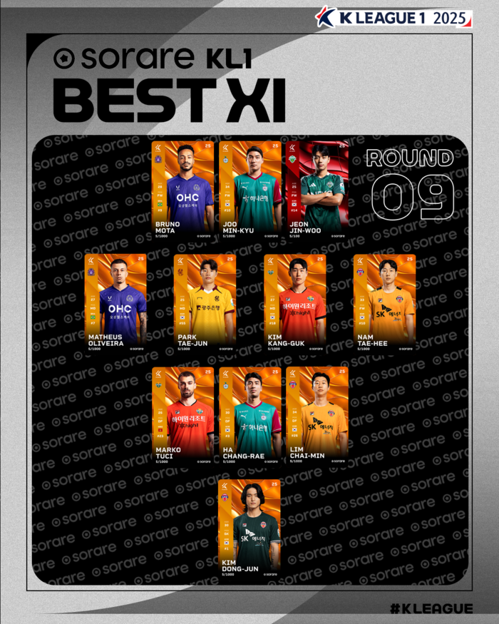 9라운드 베스트11 공격수 부문엔 모따와 주민규(대전), 전진우가 이름을 올렸다. 미드필더엔 마테우스, 박태준(광주) 김강국(강원) 남태희(제주)가 수비진엔 강투지(강원) 하창래(대전) 임채민(제주)이 각각 선정됐다. 골키퍼는 김동준(제주)이 뽑혔다.