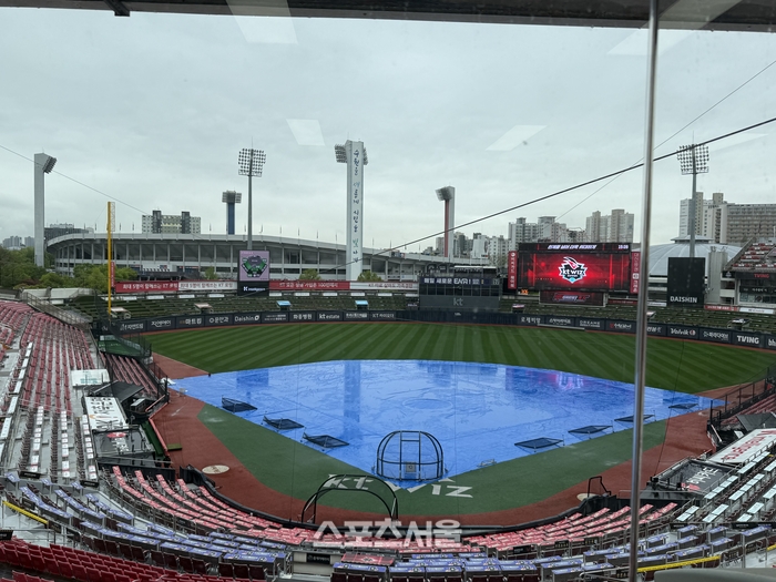 비 여부가 최대 변수였다. 오후 3시30분 기준 경기장은 여전히 방수포로 덮여 있지만, 빗줄기는 잦아든 상태다. 기상청 예보 상으로도 오후 5시 전후 비가 그칠 전망이다. 김광현-오원석의 ‘우상 매치’가 정상적으로 펼쳐질 수 있을까. duswns0628@sportsseoul.com