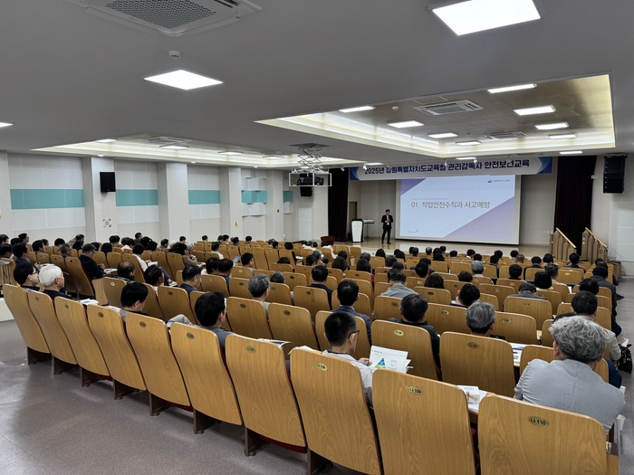 [스포츠서울ㅣ춘천=김기원기자]강원특별자치도교육청은 지난 4월 15일(화), 29일(화) 각각 강릉 교육연수원 본원과 춘천 유아교육원에서 공립학교장 및 기관장 등 관리감독자 총 350여 명을 대상으로 ‘2025년 산업안전보건 관리감독자 교육’을 실시했다.