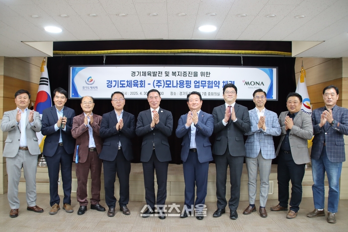 〔스포츠서울│수원=좌승훈기자〕경기도체육회는 30일 체육회관 7층 중회의실에서 ㈜모나용평과 경기체육 복지증진을 위한 업무협약을 체결했다.