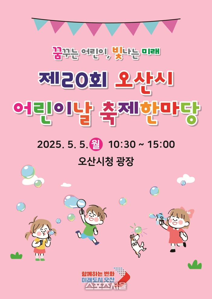 〔스포츠서울│오산=좌승훈기자〕경기 오산시는 5월 5일 어린이날을 맞아 꿈꾸는 어린이, 빛나는 미래를 주제로 제20회 어린이날 축제 한마당을 개최한다.