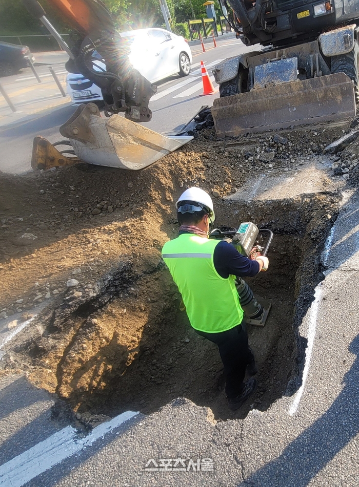 〔스포츠서울│화성=좌승훈기자〕경기 화성시는 29일 봉담읍 효행초사거리 인근 도로에서 발생한 싱크홀(땅꺼짐) 의심 신고에 대해 신속히 대응해 눈길을 끌었다.