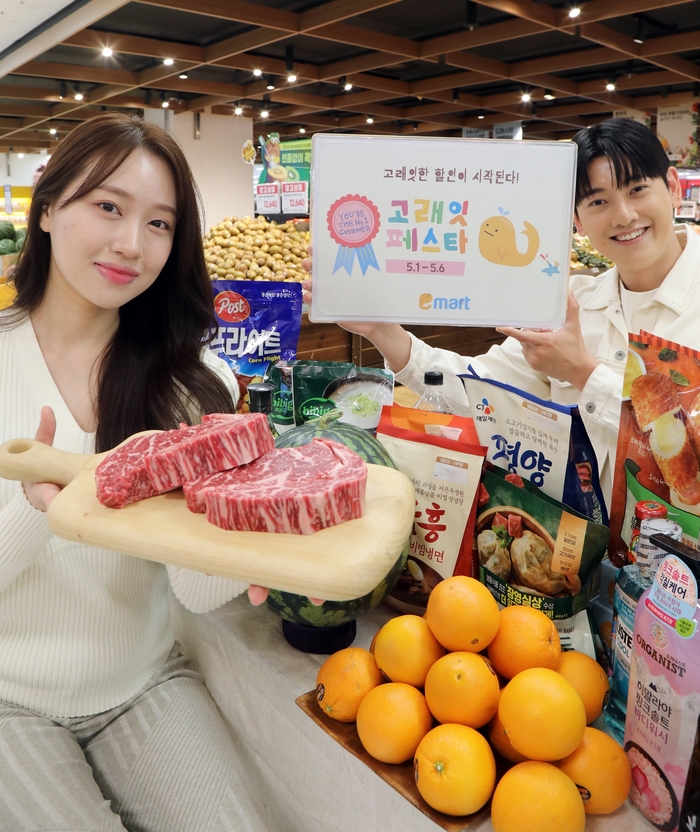 [스포츠서울 | 배우근 기자]이마트가 5월 황금연휴를 맞아 5월 1일부터 6일까지 총 6일간 역대 최대 규모의 할인 행사 ‘고래잇 페스타’를 연다. 수박, 한우, 전복, 장어 등 신선식품은 물론, 생필품과 가공식품까지 총 150여 종의 상품을 최대 반값에 판매하는 파격 이벤트다.