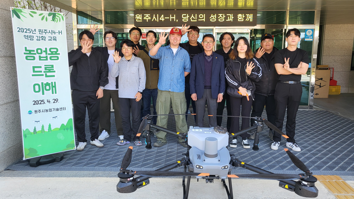 [스포츠서울ㅣ원주=김기원기자]원주시농업기술센터는 지난 29일 4-H회원을 대상으로 ‘농업용 드론’을 주제로 한 역량 강화 교육을 실시했다.