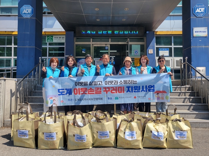 ‘도계이웃손길꾸러미’는 중·장년 1인 가구와 독거노인 등 식생활에 어려움을 겪는 가정을 대상으로, 간편 조리식품과 제철 과일 등으로 구성된 식료품을 협의체 위원들이 직접 방문해 전달하며 이웃 간의 정을 나누는 사업으로, 지역기업인 블랙밸리컨트리클럽(주)의 지정기탁금을 통해 마련된 재원으로 운영되고 있다.