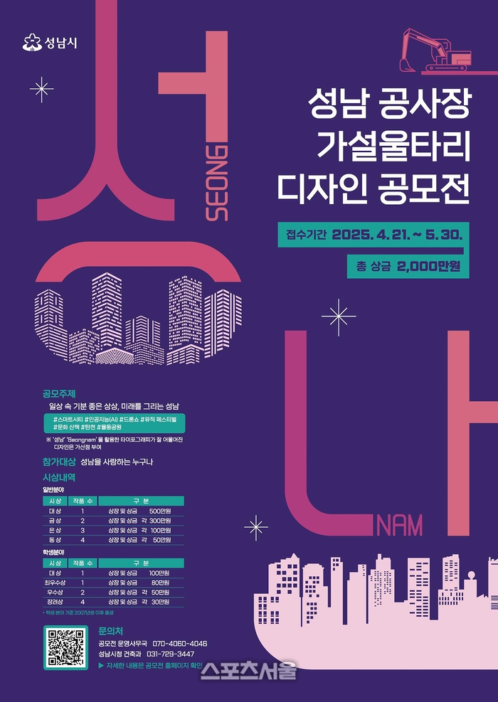 -성남시, 공사장 가설울타리 디자인 공모전 5월 30일까지 접수… 총상금 2000만원, 수상작은 성남 공사장에 실제 적용