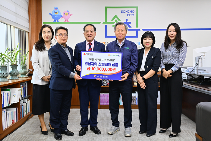 전국 | 강원 속초농협, 영남지역 산불피해 복구 지원 성금 기탁 입력2025-05-01 11:06:26 북마크 페이스북 트위터 SNS 더보기 가글자크기설정 인쇄 SNS 더보기 닫기 네이버밴드 네이버블로그 URL복사 글자크기 설정 메뉴 닫기 글자크기 설정 시 다른 기사의 본문도동일하게 적용됩니다. 가 가 가 가 가 [스포츠서울ㅣ김기원기자]속초농협(조합장 최원규)은 최근, 속초시청을 방문하여 영남지역 산불피해 복구 지원을 위한 성금 1,000만 원을 기탁했다.acdcok4021@sportsseoul.com 기사추천 0
