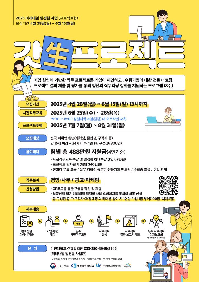 강원대학교 관계자는 “이번 프로젝트는 단순한 인턴십을 넘어, 청년들이 주도적으로 기업 과제를 수행하고 실질적인 성장을 이룰 수 있는 기회가 될 것”이라며 많은 청년들의 적극적인 참여를 당부했다.