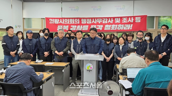 〔스포츠서울│의왕=좌승훈기자〕의왕도시공사새희망노동조합는 2일 오전 의왕시청에서 기자회견 갖고 “시의회는 공사에 대한 행정사무감사와 조사 등 중복 감사를 즉각 철회하라”고 촉구했다.