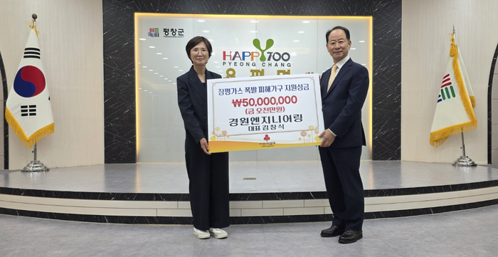 [스포츠서울ㅣ김기원기자]명성파워그린(주)(대표 박상무)와 경원엔지니어링(대표 김창식)은 2일 용평면사무소를 방문해 지난 2024년 1월 1일 발생한 장평 가스폭발 사고로 피해 복구가 완료되지 않은 가정에 각 5천만 원씩의 기부금을 전달했다.