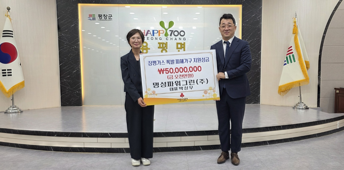 박상무 명성파워그린 대표는 “장평 가스폭발 사고로 피해를 본 가정들이 아직 복구되지 않은 상황을 접하고 매우 안타까운 마음을 금할 수 없었다”며 “이번 기부금이 피해자들에게 실질적인 도움이 되기를 바란다”라고 전했다.