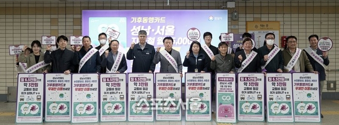 〔스포츠서울│성남=좌승훈기자〕경기 성남시는 3일 기후동행카드 이용 구간 확대 시행일을 맞아 수인분당선 야탑역에서 시민을 대상으로 기후동행카드 확대 시행 홍보활동을 펼쳤다.