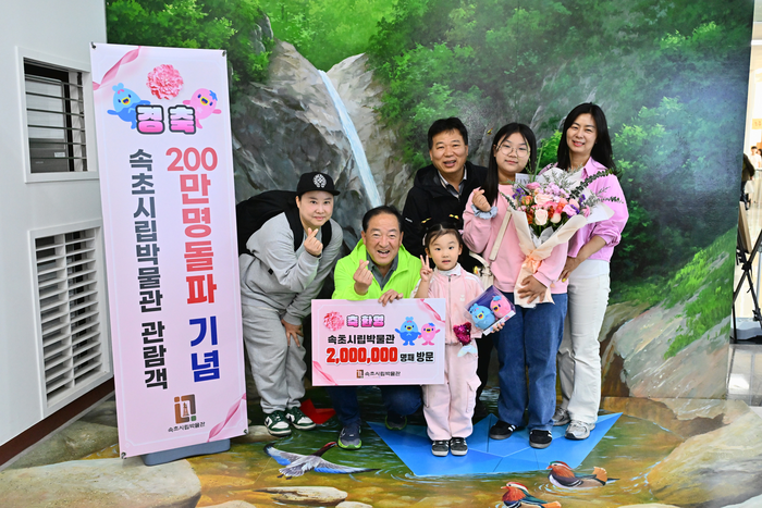 박물관은 200만 번째 방문객인 서봉수 씨(일산 거주) 가족에게 ▲속초시립박물관 이북5도 가옥 숙박 체험권 ▲속초시 마스코트 굿즈 ▲지역 내 업무협약 된 박물관․전시관 무료입장권 등 소정의 기념품을 증정했다.