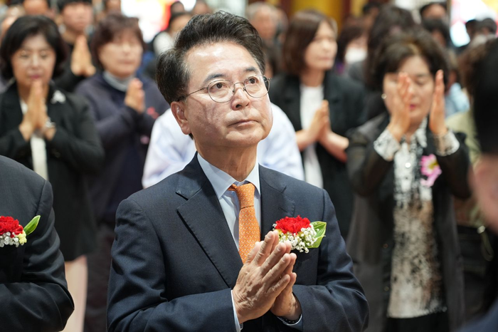 [스포츠서울ㅣ춘천=김기원기자]육동한 춘천시장이 5일 삼운사 대불보전에서 열린 부처님오신날 봉축 법요식에 참석해 축사를 전했다.