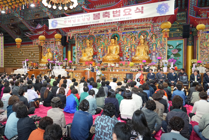 이날 법요식은 타종과 육법공양 등 식전행사에 이어 반야심경 독경, 헌화 및 관불의식, 축사, 발원문 봉독 등 전통의식으로 진행됐다.