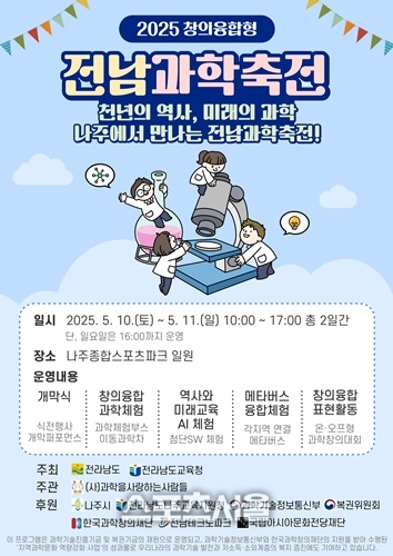 김영길 미래교육과장은 “2025 전남과학축전은 지역의 역사와 미래기술을 과학으로 연결하는 특별한 배움의 장이 될 것이다”며 “학생들이 일상 속 과학의 가치를 발견하고 미래를 그려볼 수 있는 기회가 되길 바란다”고 말했다.