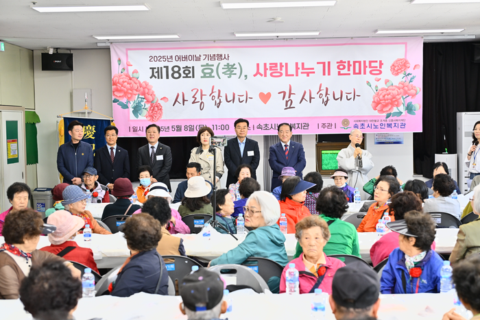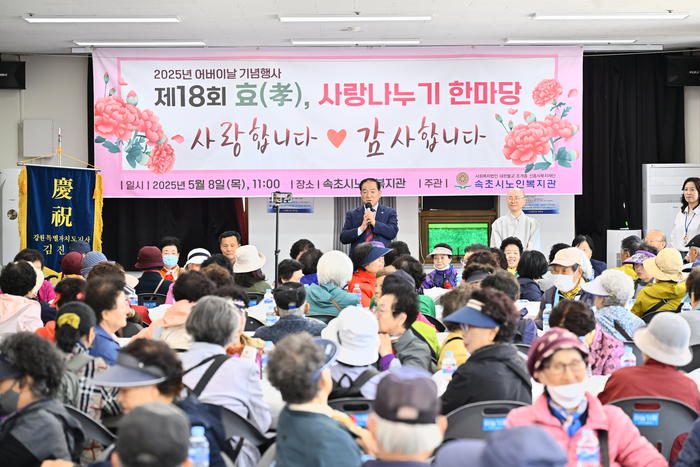 [스포츠서울ㅣ김기원기자]어버이날을 맞이한 5월 8일, 속초시노인복지관에서는 이병선 속초시장과 속초시의회 의원, 지역 어르신 등 600여 명이 참석한 가운데 제18회 효(孝), 사랑나누기 한마당 기념 행사가 열렸다.