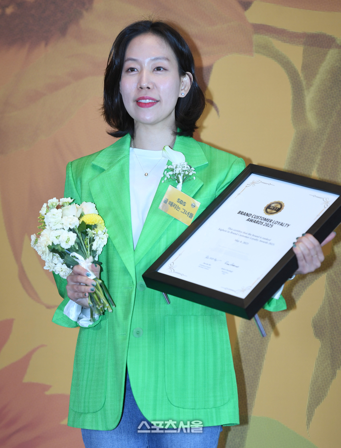 ‘골을 때리는 그녀들’ 김화정 PD가 8일 서울 여의도 콘래드호텔에서 열린 2025 브랜드 고객충성도 대상 시상식에서 프로그램(스포츠예능) 부문상을 받은 후 포즈를 취하고 있다.