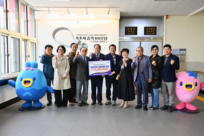 [스포츠서울ㅣ김기원기자]속초시 재속초 경상도민회(회장 이학도) 회원 일동은 5월 8일 속초시청을 방문하여 영남지역 산불피해 복구 지원을 위한 성금 1,300만 원을 기탁했다.