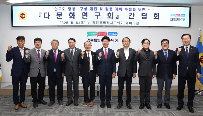 [스포츠서울ㅣ춘천=김기원기자]제11대 강원특별자치도의회 의원 연구 모임인 「다문화연구회」(회장 박길선 의원)는 5월 8일(목), 도의회 세미나실에서 연구회 명칭 변경 및 구성 개편 간담회를 열고, 연구회 명칭을 「글로벌 문화 공동체 발전 연구회」로 공식 변경했다.