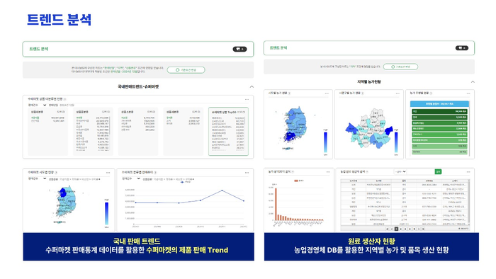 식품진흥원은 산업단지 등록공장 정보, 고용보험 가입 사업장 현황, 전국 사업체조사 기반 기업정보, 산지 도매가격 등 다양한 공공기관 데이터를 연계해, ‘디지털 식품정보 플랫폼’ 기반의 대시보드 서비스를 오는 2025년 12월부터 국민에게 제공할 계획이다.