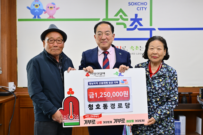 전국 | 강원 속초시 청호동경로당, 영남지역 산불피해 복구지원 성금 1,250,000원 기탁 입력2025-05-09 15:58:30 북마크 페이스북 트위터 SNS 더보기 가글자크기설정 인쇄 SNS 더보기 닫기 네이버밴드 네이버블로그 URL복사 글자크기 설정 메뉴 닫기 글자크기 설정 시 다른 기사의 본문도동일하게 적용됩니다. 가 가 가 가 가 [스포츠서울ㅣ김기원기자]속초시 청호동경로당(회장 김상호)은 5월 9일(금) 속초시청을 방문해 영남지역 산불피해 복구지원 성금 1,250,000원을 기탁했다.acdcok4021@sportsseoul.com 기사추천 0