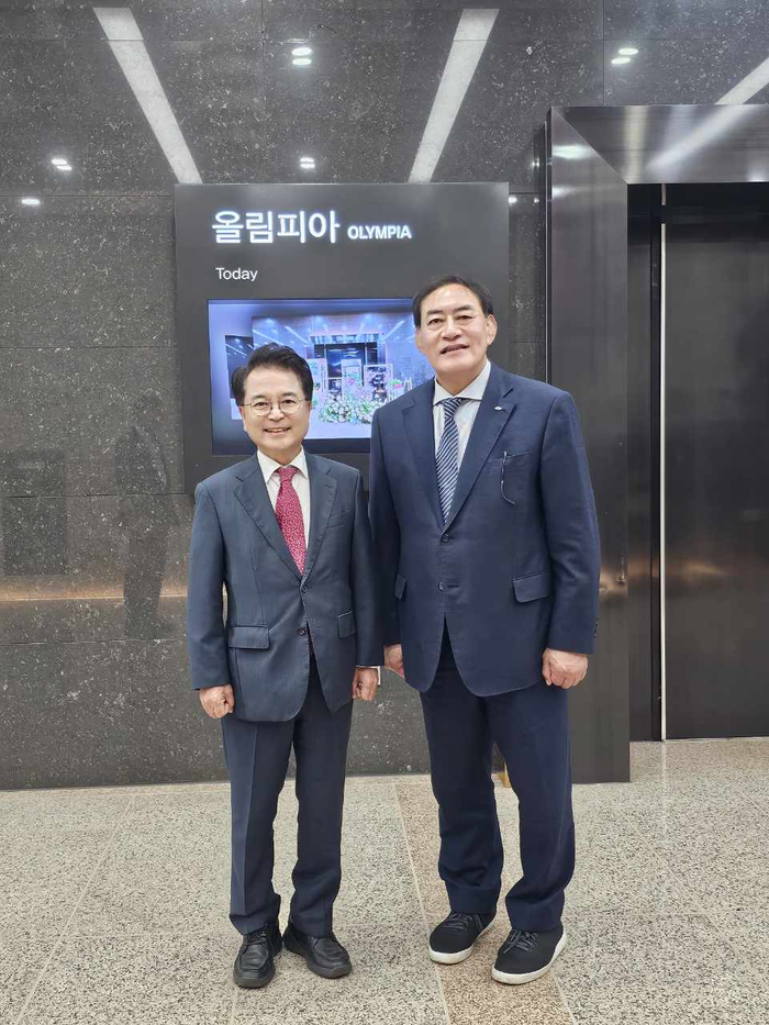 [스포츠서울ㅣ춘천=김기원기자]육동한 춘천시장이 9일 서울 올림픽파크텔에서 하형주 국민체육진흥공단 이사장과 면담을 갖고 지역 체육 인프라 확충을 위한 협조를 요청했다.