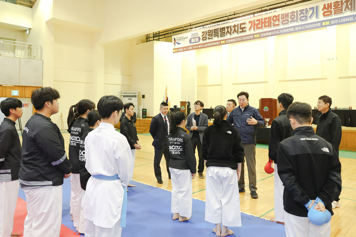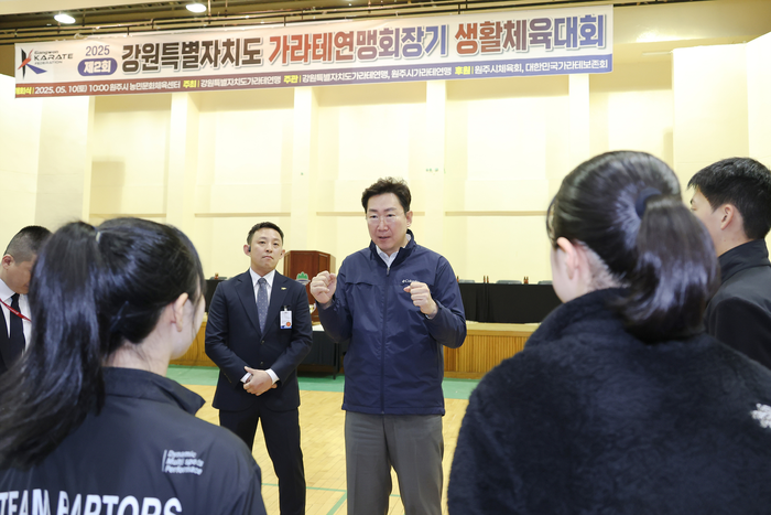 전국 | 강원 원강수 원주시장, 가라테연맹회장기 생활체육대회 참석 입력2025-05-11 20:22:35 북마크 페이스북 트위터 SNS 더보기 가글자크기설정 인쇄 SNS 더보기 닫기 네이버밴드 네이버블로그 URL복사 글자크기 설정 메뉴 닫기 글자크기 설정 시 다른 기사의 본문도동일하게 적용됩니다. 가 가 가 가 가 [스포츠서울ㅣ원주=김기원기자]원강수 원주시장은 10일 문막농민문화체육센터에서 열린 가라테연맹회장기 생활체육대회에 참석했다.acdcok4021@sportsseoul.com 기사추천 0