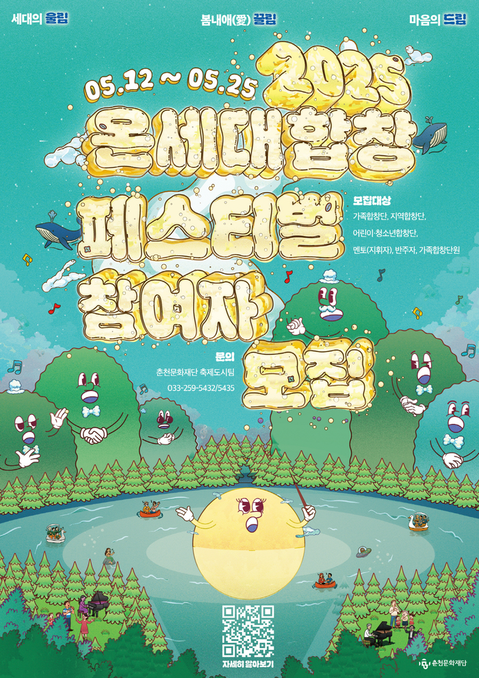 [스포츠서울ㅣ춘천=김기원기자]춘천문화재단(이사장 박종훈)은 제9회 <온세대합창페스티벌>의 참여자를 5월 12일(월)부터 5월 25일(일) 18시까지 모집한다. 올해는 ‘세대의 울림, 봄내애(愛) 끌림, 마음의 드림(Dream)’을 주제로 한다.
