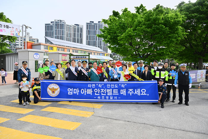 [스포츠서울ㅣ김기원기자]속초시는 5월 13일 오전 8시부터 중앙초등학교 일원에서 속초경찰서, 속초양양교육지원청, (사)모범운전자회 속초시지회, 선진교통실서위원회 등 관계기관·단체와 함께 교통사고 예방과 안전띠 착용 일상화를 위한 캠페인을 진행했다.
