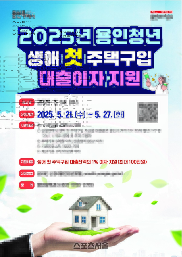 〔스포츠서울│용인=좌승훈기자〕경기 용인시는 생애 첫 주택구입 자금 대출을 받은 지역 내 청년을 대상으로 ‘청년 생애 첫 주택구입 대출이자 지원사업’을 시행한다고 14일 밝혔다.
