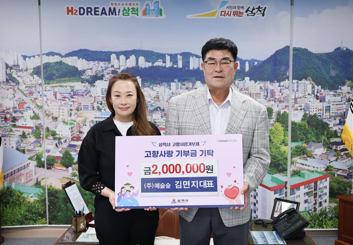 [스포츠서울ㅣ김기원기자]문화예술 콘텐츠 기업 ㈜예술숲의 김면지 대표가 14일 삼척시를 방문해 고향사랑기부금 200만 원을 전달했다.
