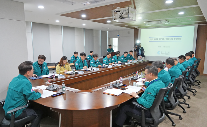 [스포츠서울ㅣ춘천=김기원기자]육동한 춘천시장이 16일 오전 시청 중회의실에서 여름철 자연재난에 대비한 ‘2025년 여름철 자연재난 대비상황 점검회의’를 열고, 집중호우·태풍·폭염 등 여름철 재난에 대한 종합 대응계획을 점검했다.