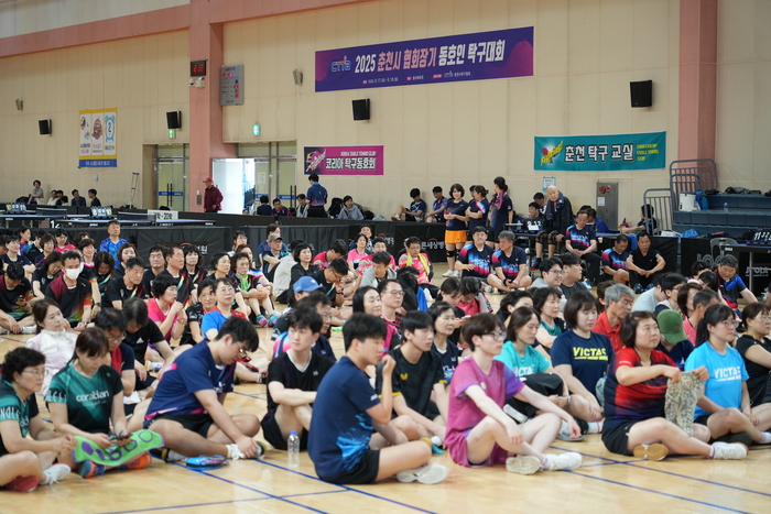 전국 | 강원 춘천시협회장기 동호인 탁구대회 개회식 입력2025-05-17 18:45:17 북마크 페이스북 트위터 SNS 더보기 가글자크기설정 인쇄 SNS 더보기 닫기 네이버밴드 네이버블로그 URL복사 글자크기 설정 메뉴 닫기 글자크기 설정 시 다른 기사의 본문도동일하게 적용됩니다. 가 가 가 가 가 [스포츠서울ㅣ춘천=김기원기자]춘천시협회장기 동호인 탁구대회 개회식이 17일 봄내체육관 일원에서 개최됐다.acdcok4021@sportsseoul.com 기사추천 0