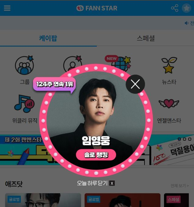 [스포츠서울 | 박경호 기자] 가수 임영웅이 ‘팬앤스타’ 솔로 랭킹에서 124주 연속 1위를 차지했다.