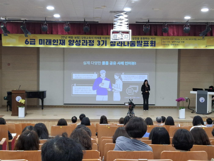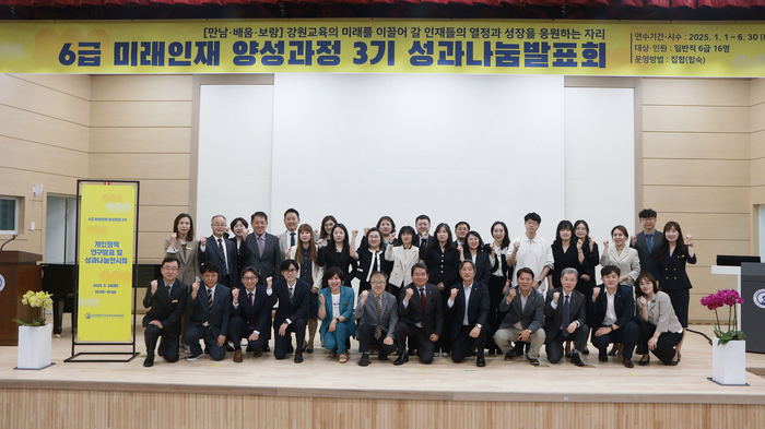 [스포츠서울ㅣ김기원기자]강원특별자치도교육청교육연수원(원장 민섭)은 5월 20일(화) 10시부터 4시까지 교육연수원 별관(병산동)에서 강원특별자치도교육청 소속 교직원 220명을 대상으로 ‘6급 미래인재양성과정 3기’ 연수생들의 성과나눔발표회를 개최했다.