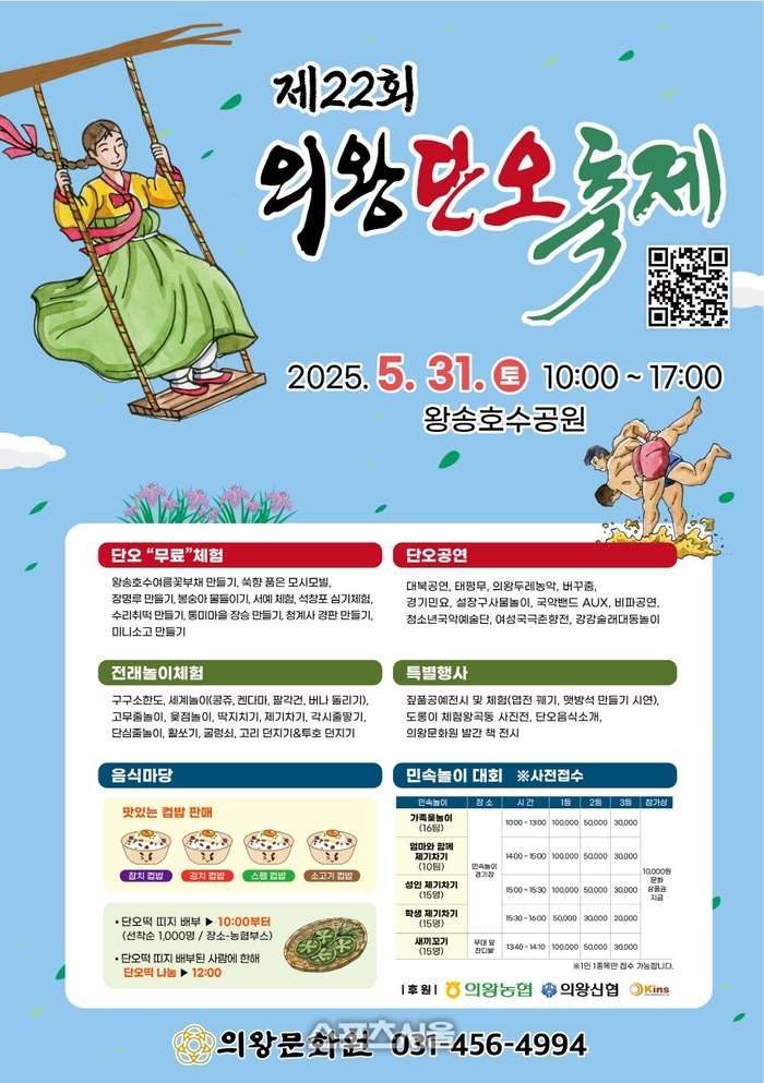 의왕문화원이 주관하는 이번 단오 축제는‘전통을 잇고, 미래를 열다’라는 주제로 시민이 함께 만들고 즐기는 시민 주도형 축제로 기획됐다. 특히, 전통과 현대가 어우러진 풍성한 행사 운영으로 가족 단위 관람객에게 최적의 나들이 코스가 될 전망이다.