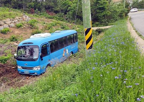 전남소방본부 등에 따르면 20일 오후, 신안군 도초면 한 도로를 달리던 25인승 버스가 미끄러져 도로 옆 수풀에 빠졌다. 이 신고를 접수한 소방인력이 출동했다.